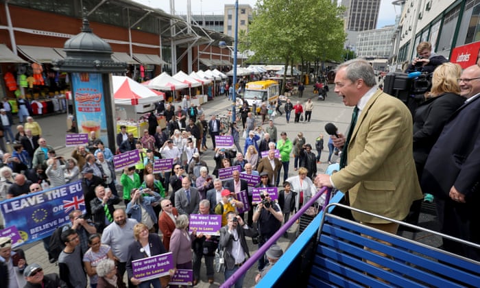 Rising populism … Ukip leader Nigel Farage in Birmingham, 2016, campaigns to leave the EU.